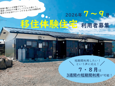 茅野市 移住体験住宅の利用者募集(2026年7月〜9月利用分)