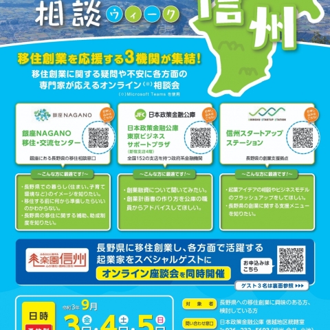 【終了しました】9/3(金)〜9/5(日)オンライン相談会「移住創業相談ウィーク信州」が開催されます