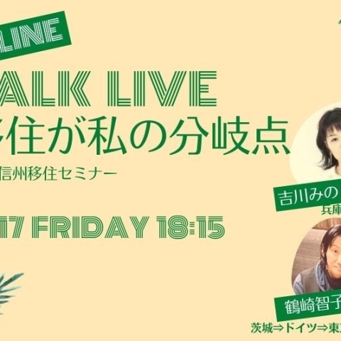 【終了しました】9/17(金)オンライン移住女子トークライブ〔移住が私の分岐点〕楽園信州移住セミナー
