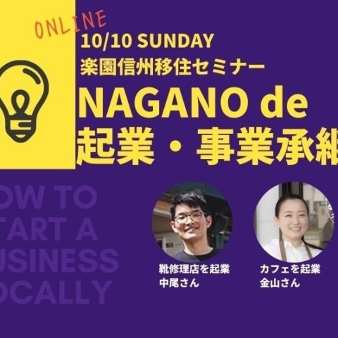 【終了しました】10/10日(日)【オンライン開催】楽園信州移住セミナー『NAGANO de 起業・事業承継』