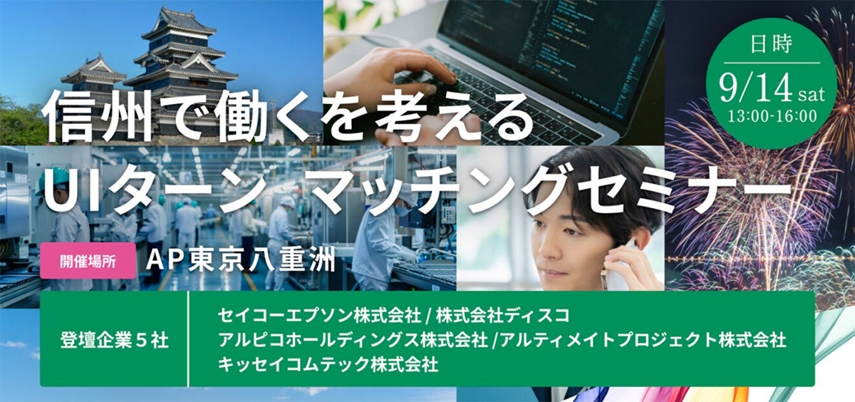 【終了しました】【茅野市も参加!】9/14(土)信州で働くを考えるUIターンマッチングセミナー